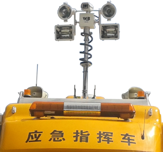 车顶安装大功率照明镝灯和升降转到装置为执行任务现场提供强光照明。